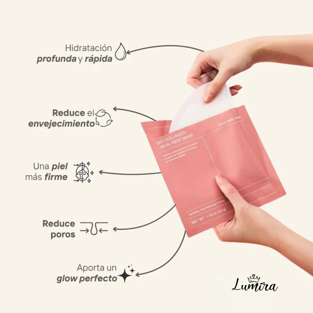 Cada Mascarilla combina colágeno de bajo peso molecular para reafirmar y levantar, fermento de Galactomyces pra iluminar y suavizar, y un complejo hialurónico para empapar tu piel con una hidratación duradera, dejándola brillante, tersa y radiante por la mañana.