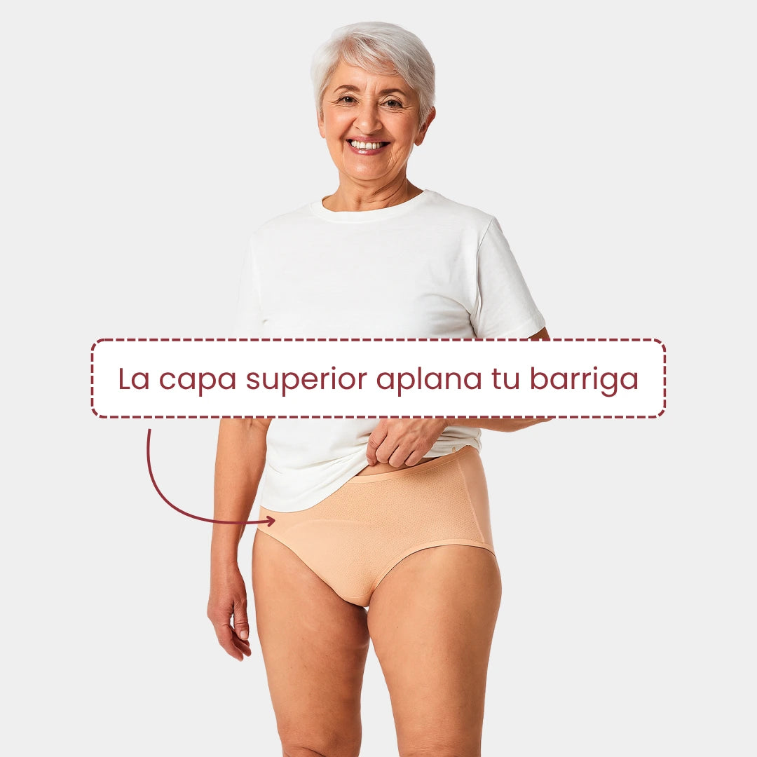 Nuestra ropa interior es totalmente hermética, cómoda y discreta, lo que te ayudará a sentirte segura y confiada todo el día.